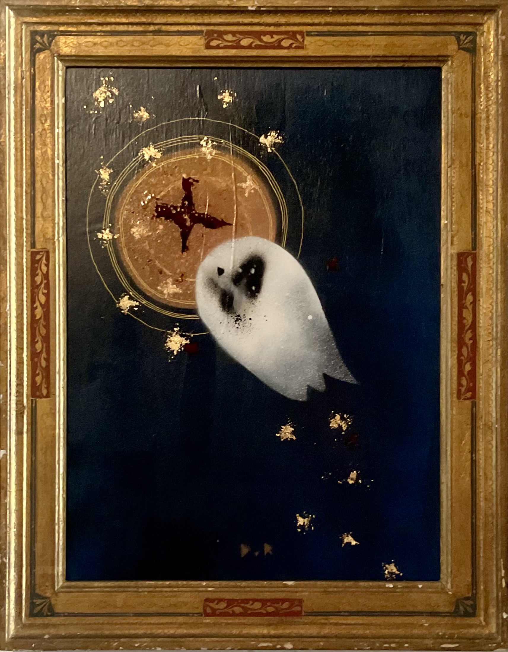 on reclaimed ply panel in antique gold frame (printed icon on reverse)