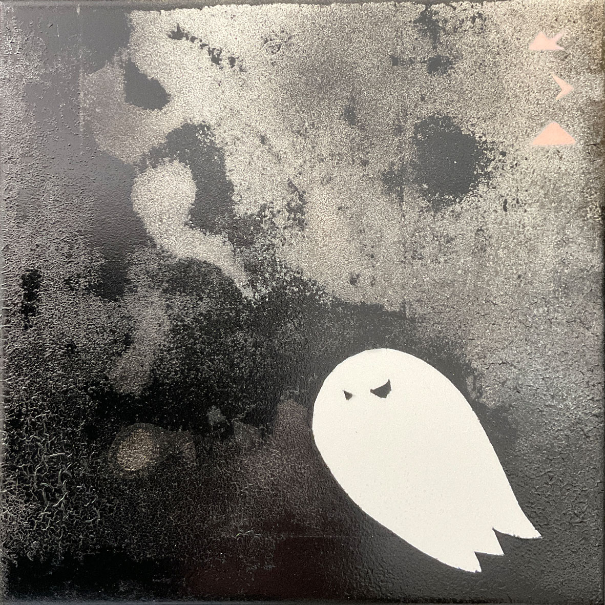 Synthetic polymer, acrylic & enamel spray paint on ceramic tile